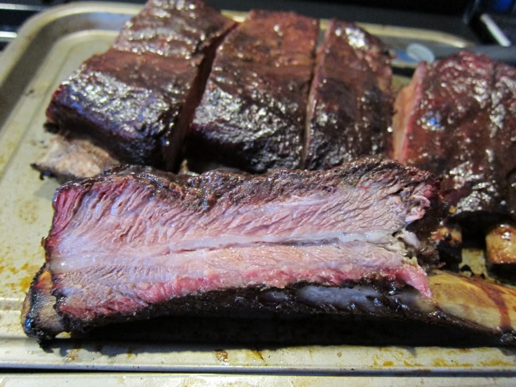 Decided to try Beef Ribs, and Baby backs - both had different rubs added night before, and were smoked using Mesquite.