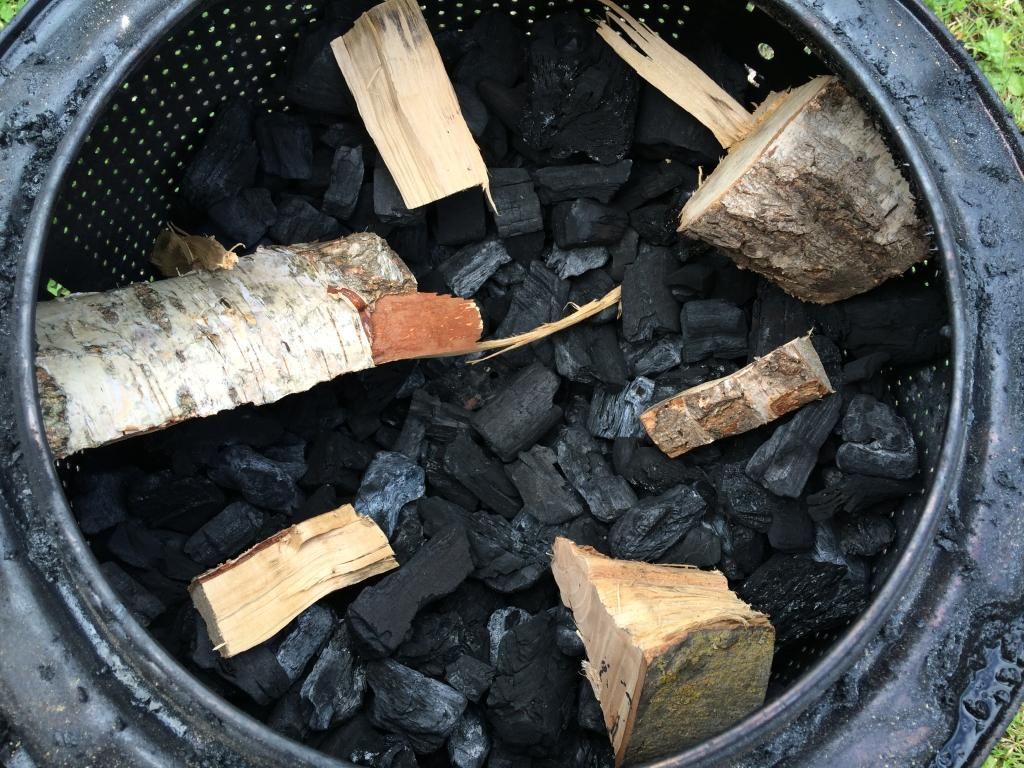 Now on the amount I would never use as much as Dave, i only want one piece of wood burning at a time when I use the minion method which gives ample smoke. Each piece is between a golf ball and tennis ball (although never that big) and set them up to burn one after the other