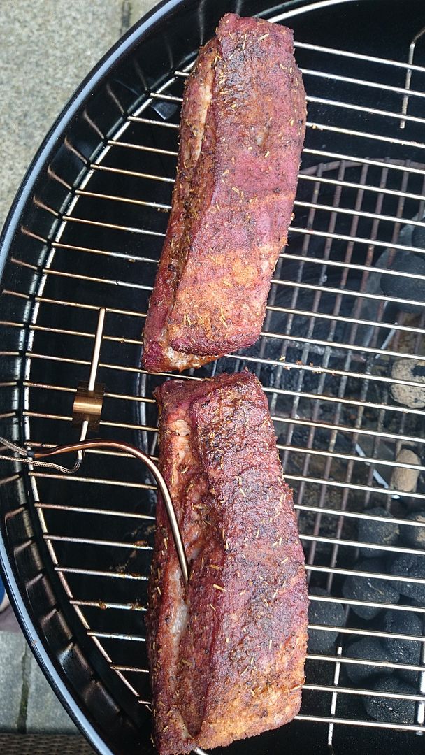 I Had my first long cook on my weber 57cm one touch yesterday. Used weber premium briquettes and oak for the smoke.