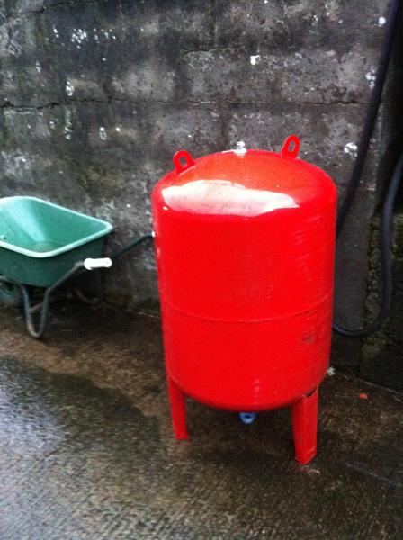 we have well water and this is the tank that pressurises the water. There is a bladder inside and air is pumped between the bladder and the tank to cause the pressure.