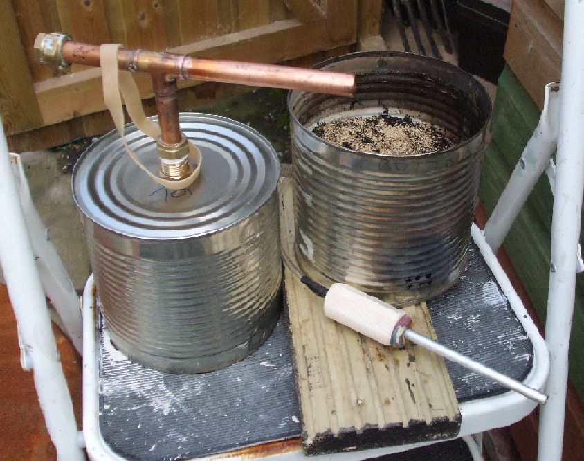 The son got me two A10 'food' tins, luckily one had a slightly smaller diameter than the other and fitted together nicely. I drilled several 'air' holes in the bottom of the lower tin.